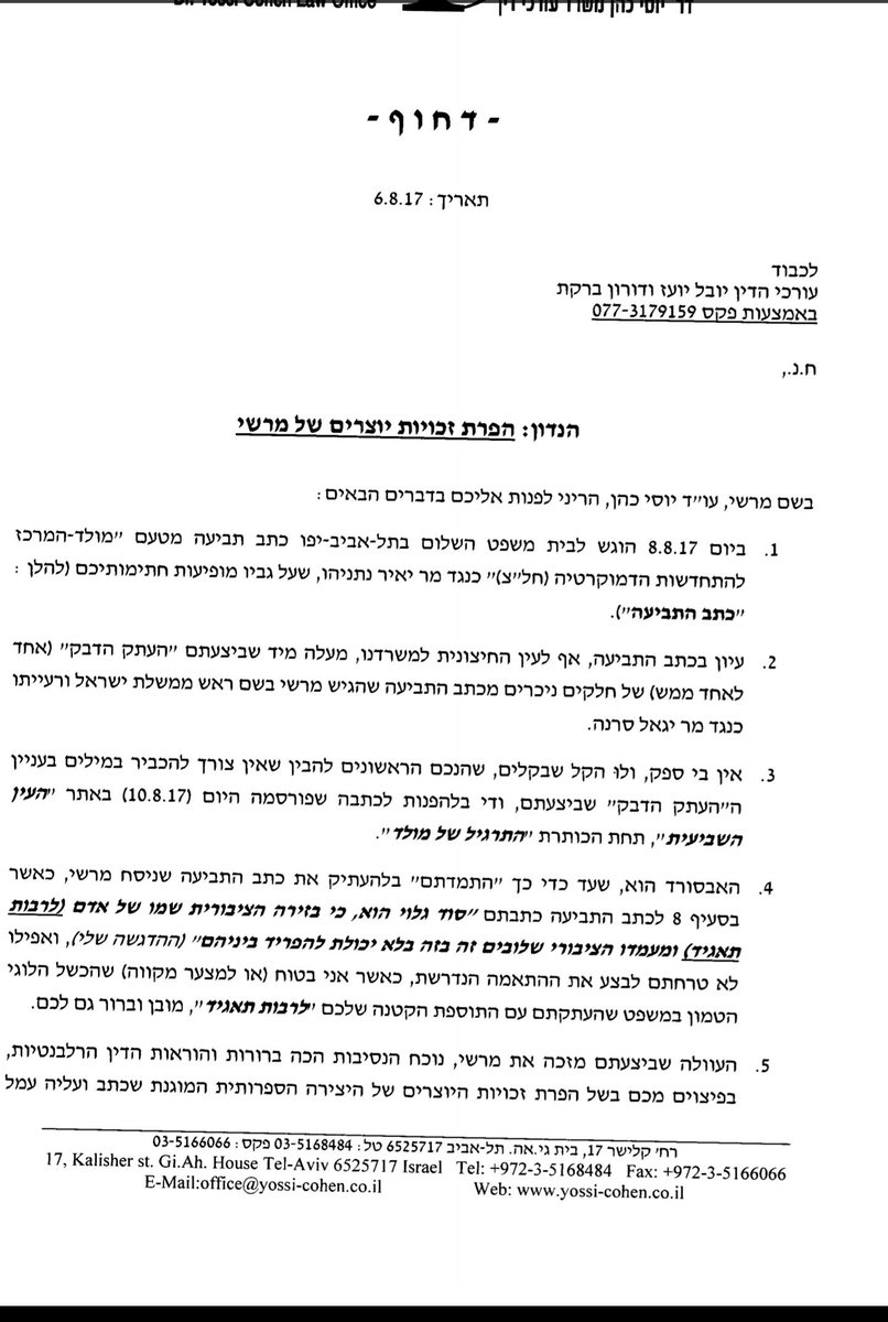 Itamar Eichner در توییتر פרקליטי משפ נתניהו מאיימים לתבוע את מולד על הפרת זכויות יוצרים בתביעת הדיבה נגד יאיר נתניהו בגלל שהעתיקו מילה במילה את התביעה נגד יגאל סרנה Https T Co Lenf43ycmn